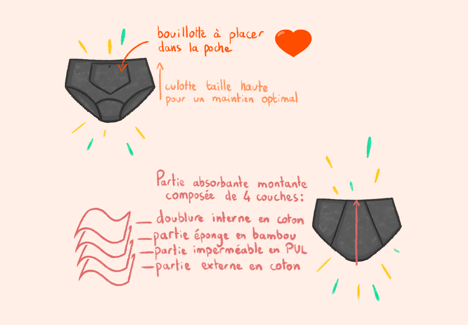 Si comme beaucoup de personnes tu souffres de douleurs ou désagéments pendant ta période de règles, alors notre super Culotte Mariotte est faite pour toi 😊
