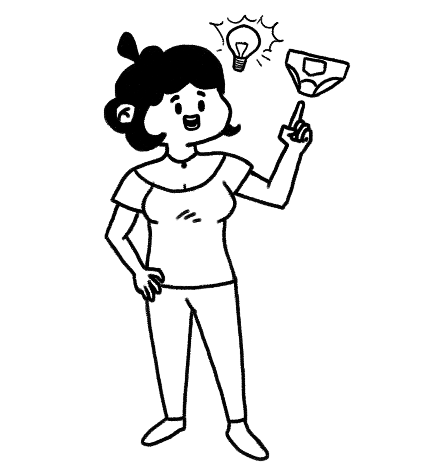 "Les culottes menstruelles c'est chouette mais ce serait quand même mieux s'il y avait une poche où mettre une petite bouillotte pour calmer les douleurs..." a-t-elle dit, encombrée par la grosse bouillotte qu'elle utilise les premiers jours fatidiques.